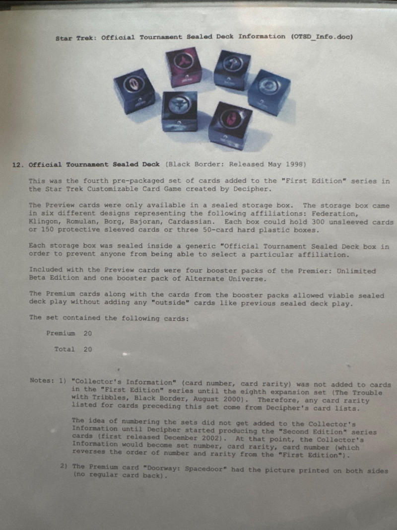 Lot # 126 - Star Trek 1E Decipher CCG Card Sets
