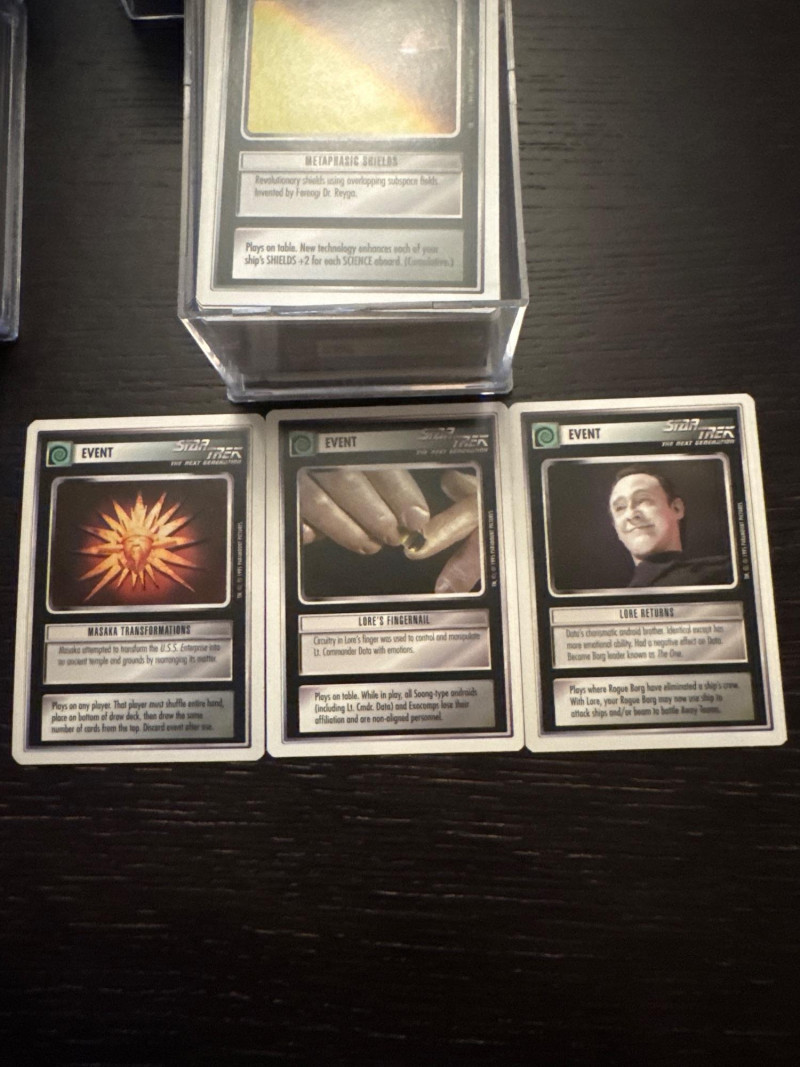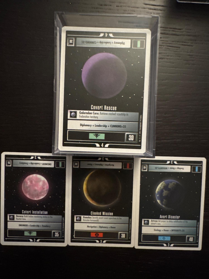 Star Trek Customizable Card Game (STCCG) cards from the 1995 Limited Edition White Border First Edition release, produced by Decipher.