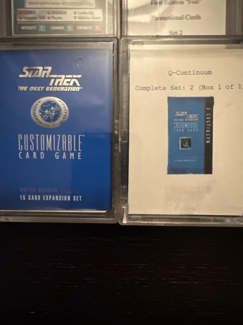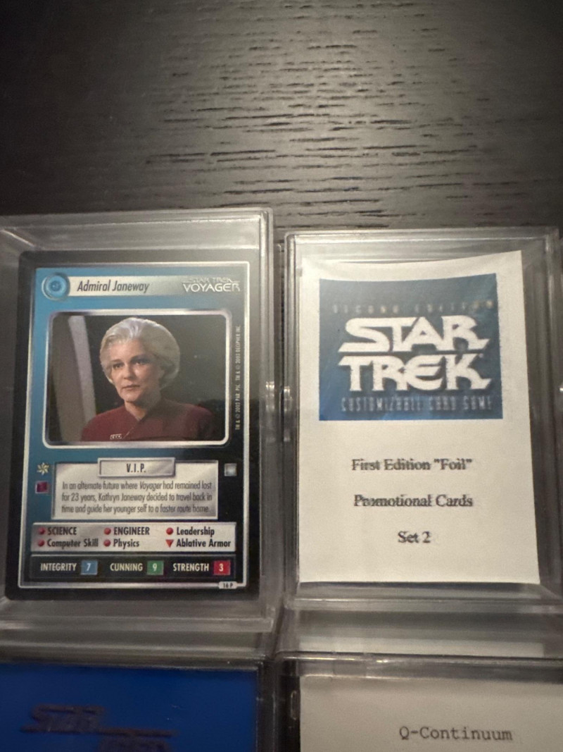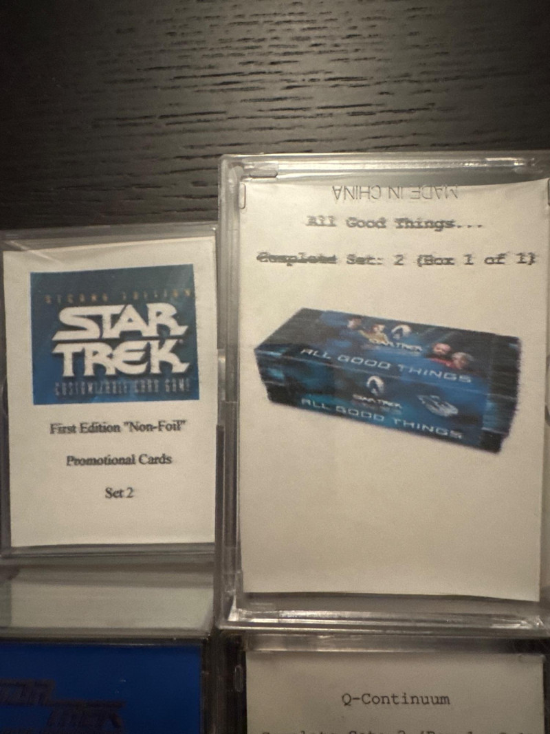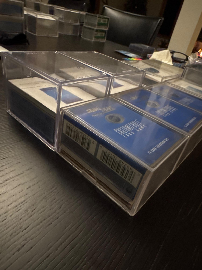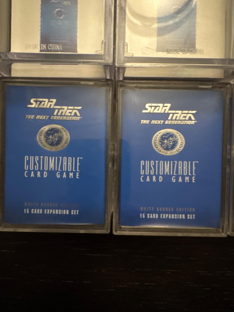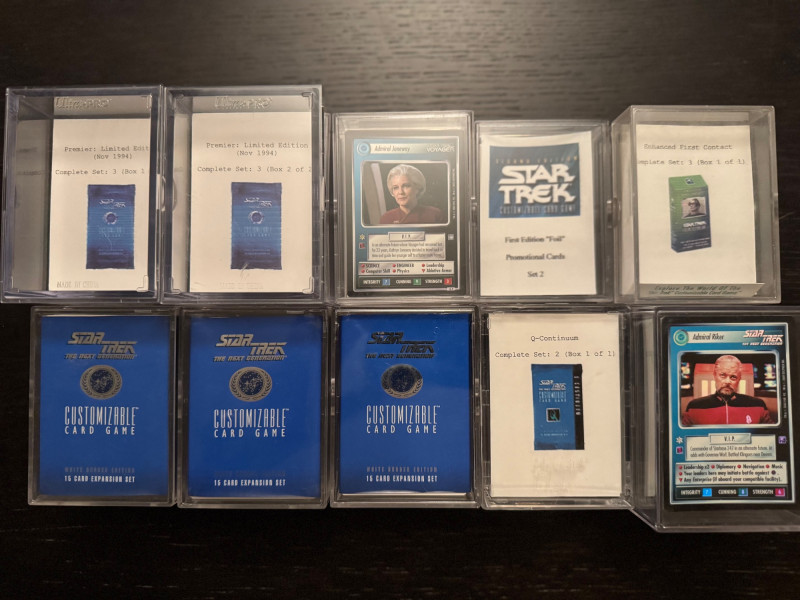 Large assortment of Star Trek CCG cards and sets. Many in pristine condition, most have been stored in plastic boxes and never used for play. Large stack with admiral Riker on top are foil cards. Start your collection or augment your existing collection.