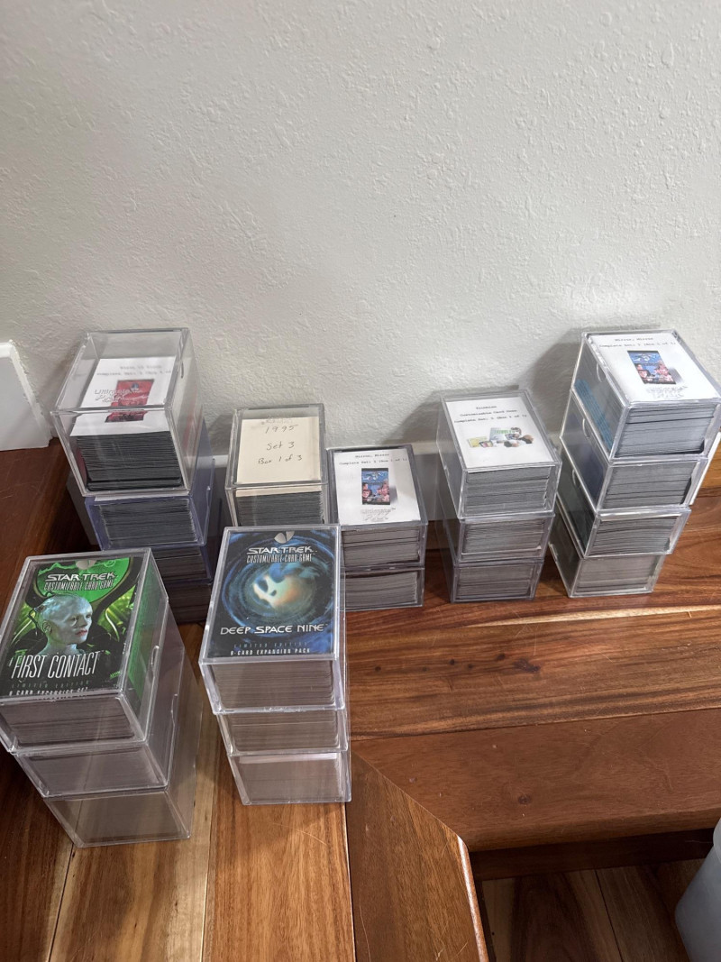 Large assortment of Star Trek CCG Sets. This lot can start your collection or find that one card you have been looking for to complete a set.
