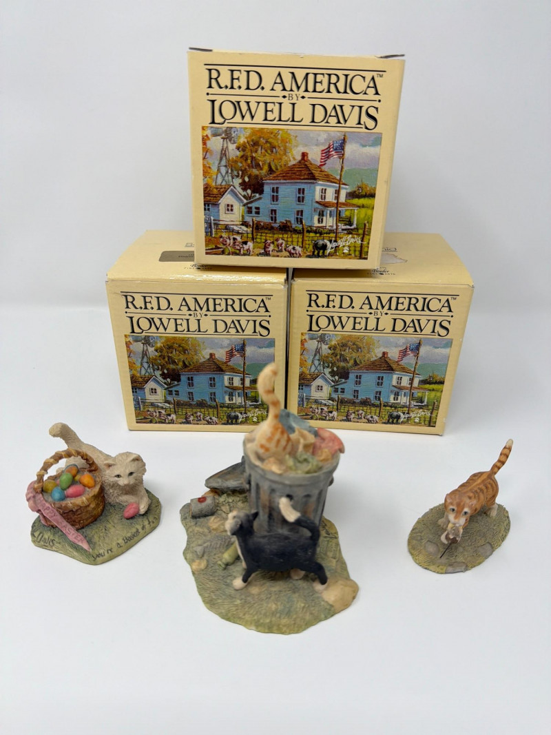 Lowell Davis Vintage Schmid Border Fine Arts Cat Figurines (Set of 3)