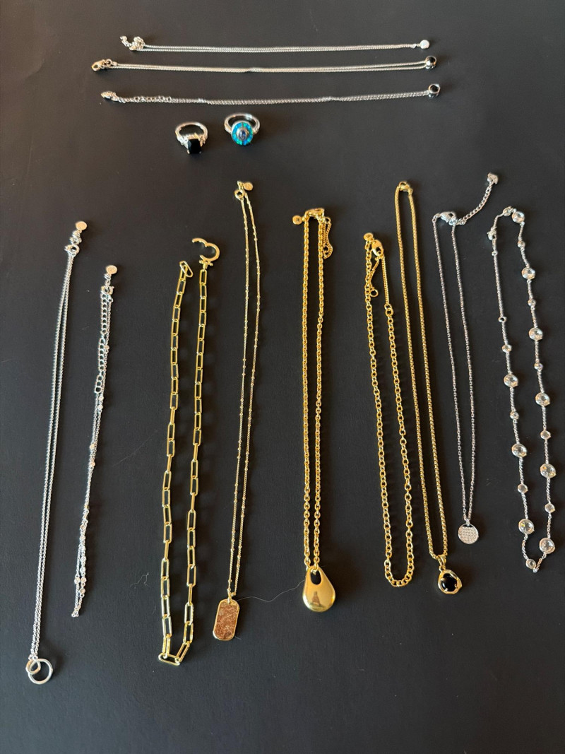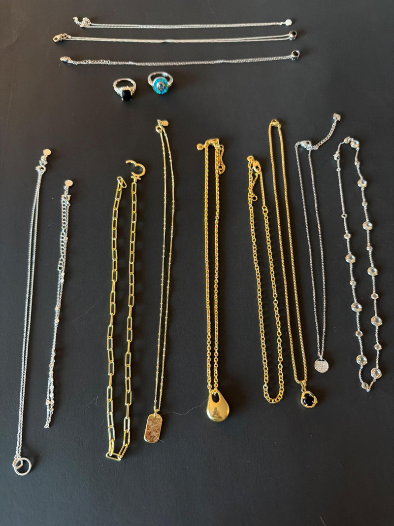 Assorted sterling silver and gold-tone jewelry. All pieces are in good condition.