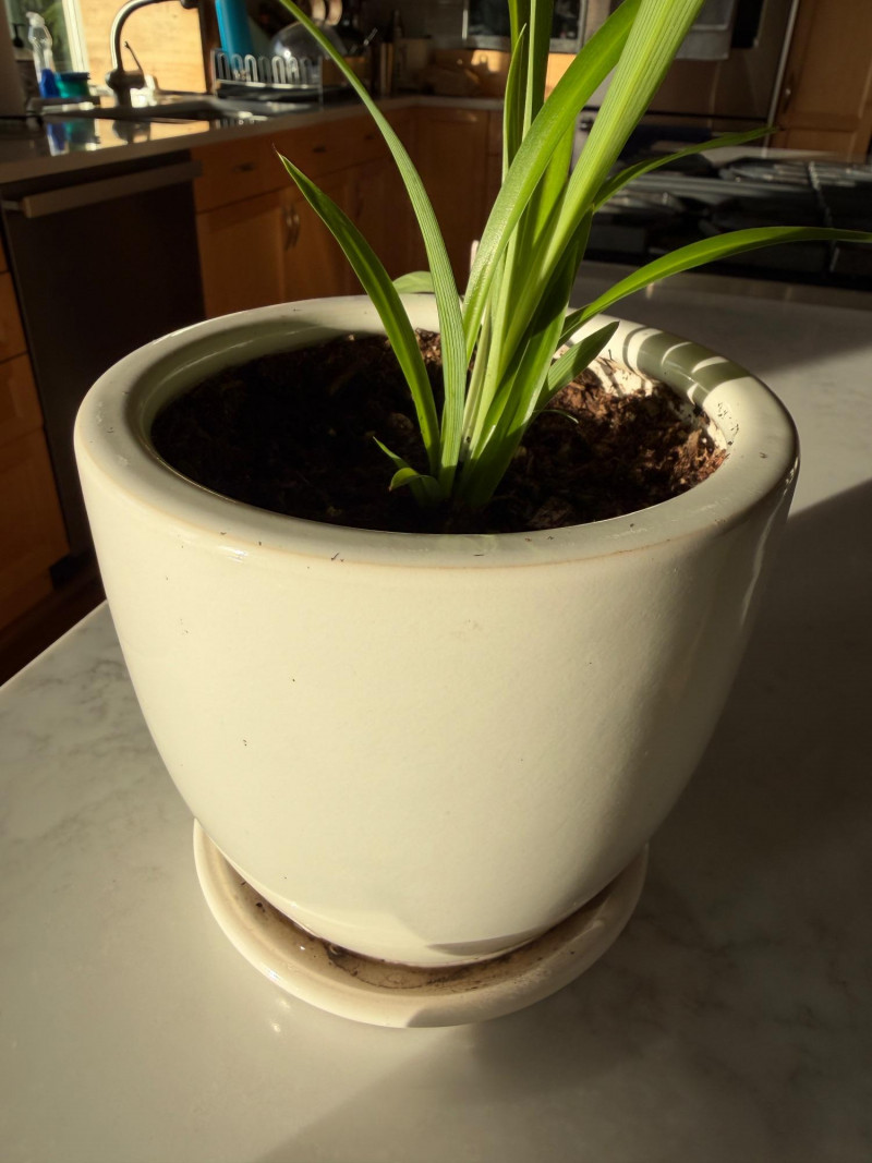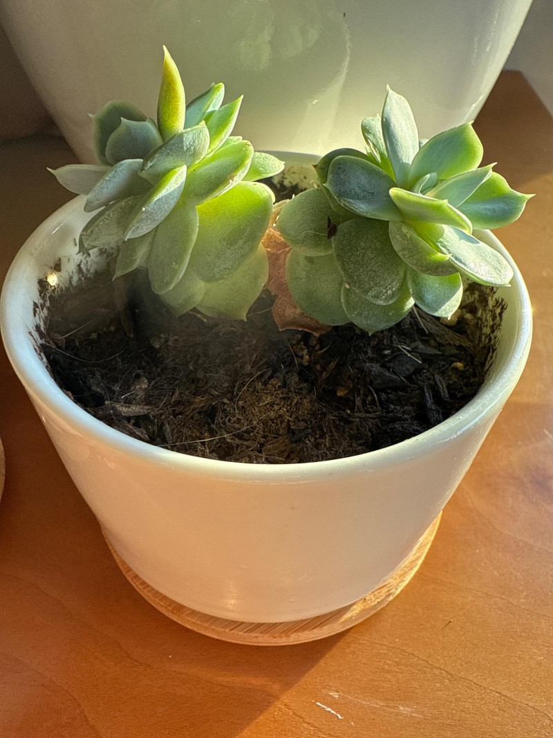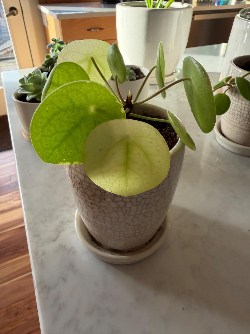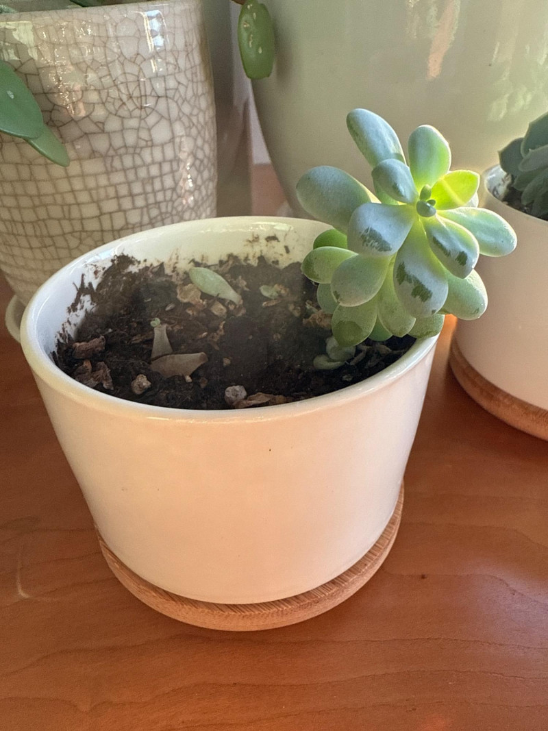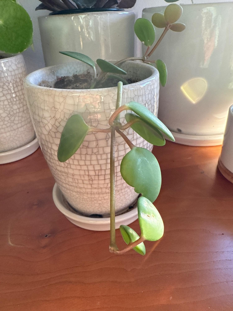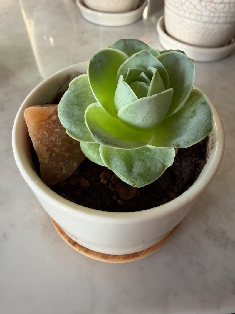 Assorted live plants in ceramic pots: spider plant, money plant, african violet, and succulents: All plants and pots are in good condition.