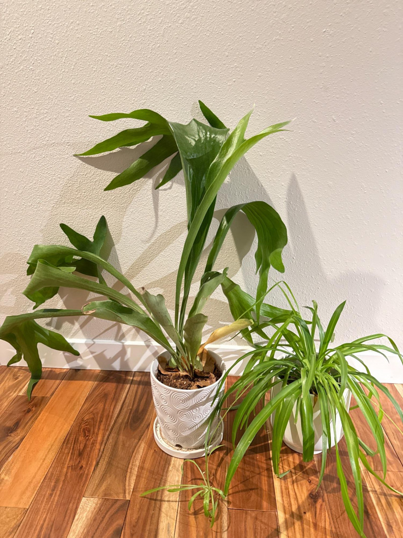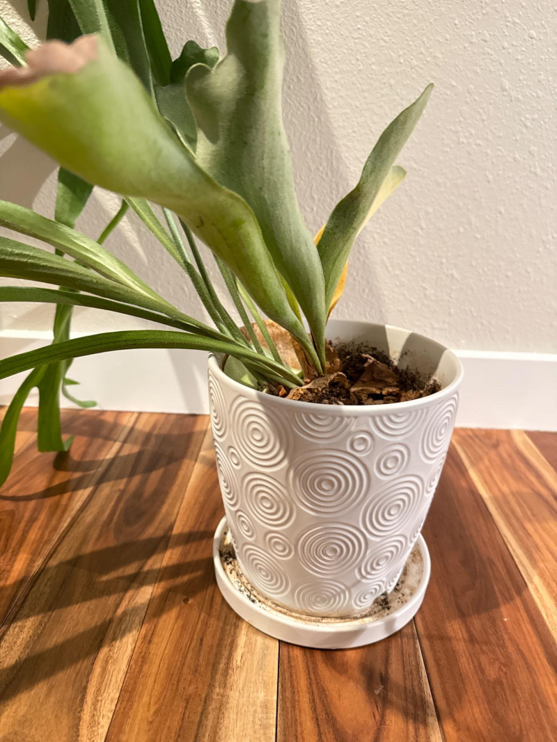 Staghorn Fern and Spider Plant in Ceramic Pots
