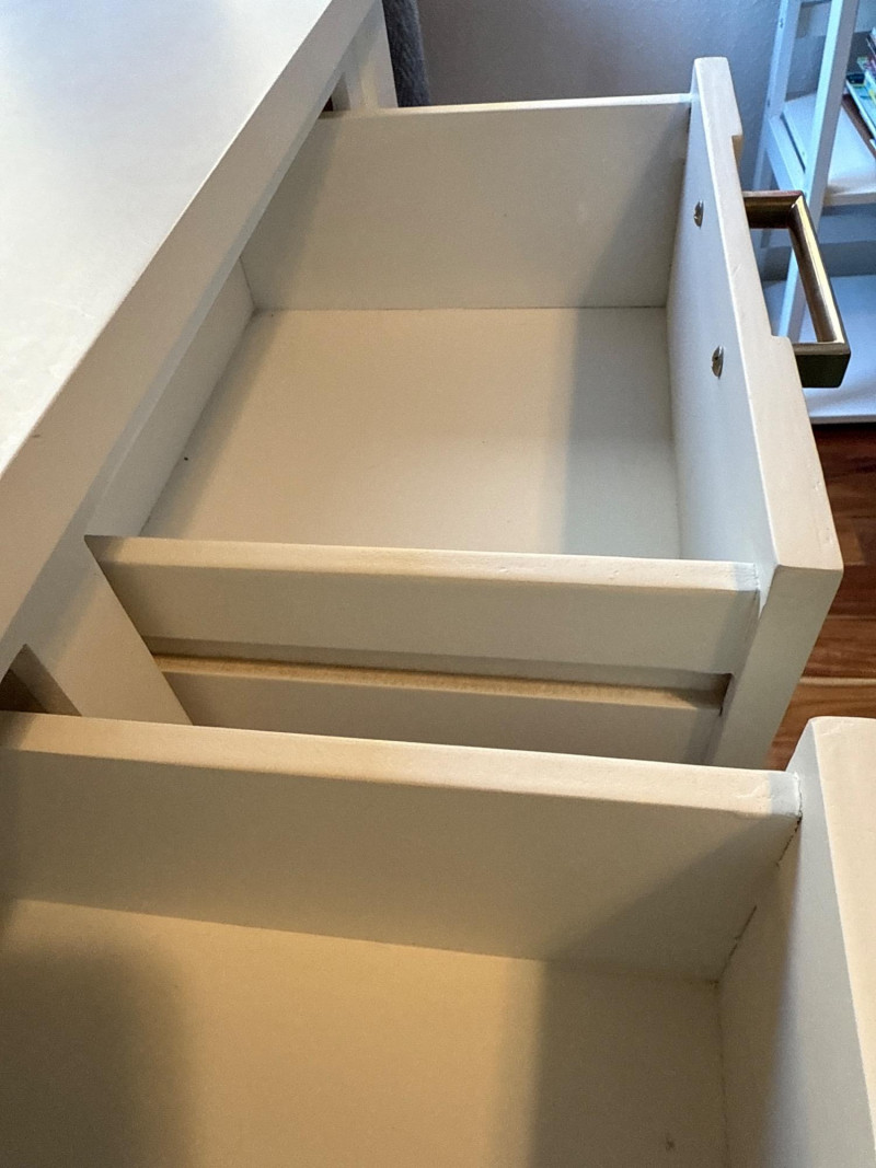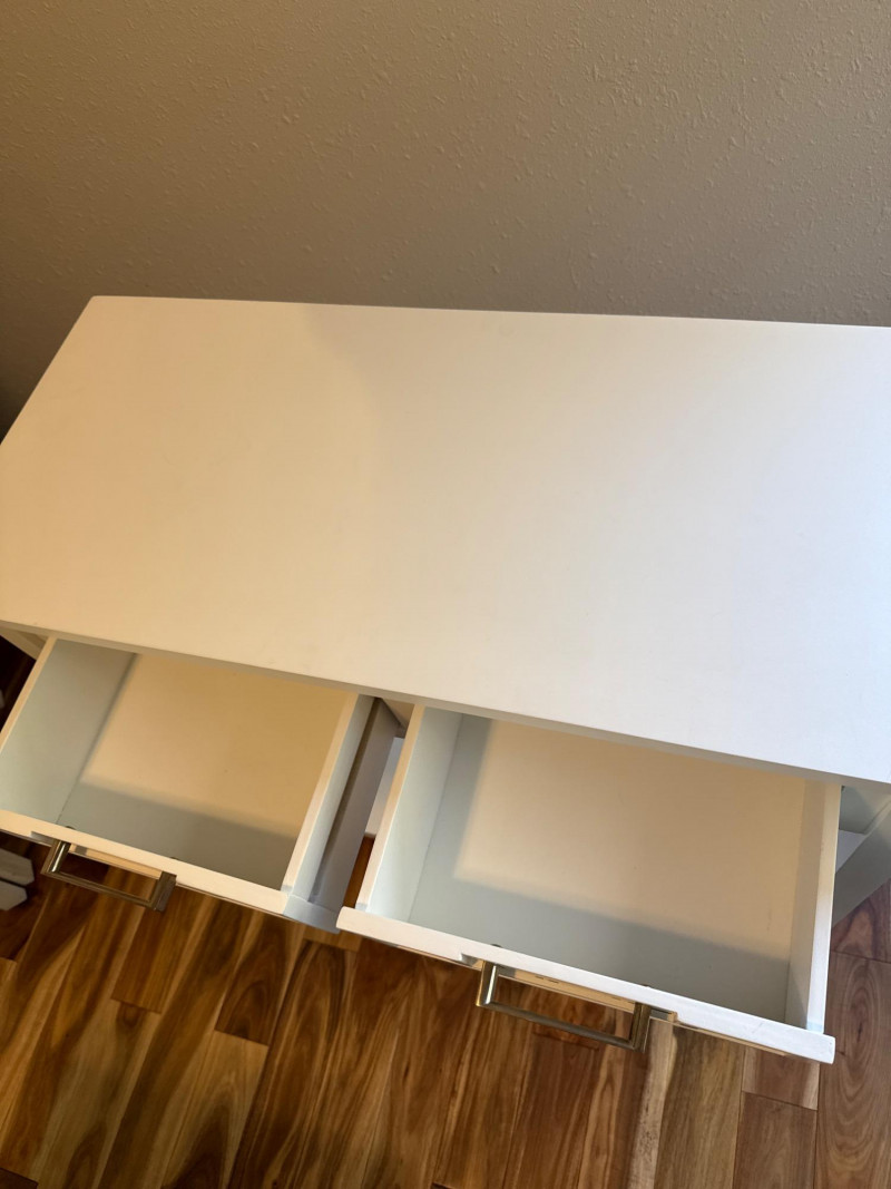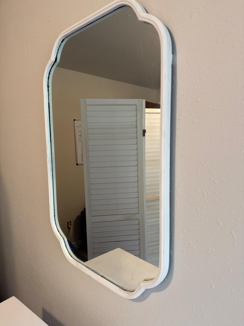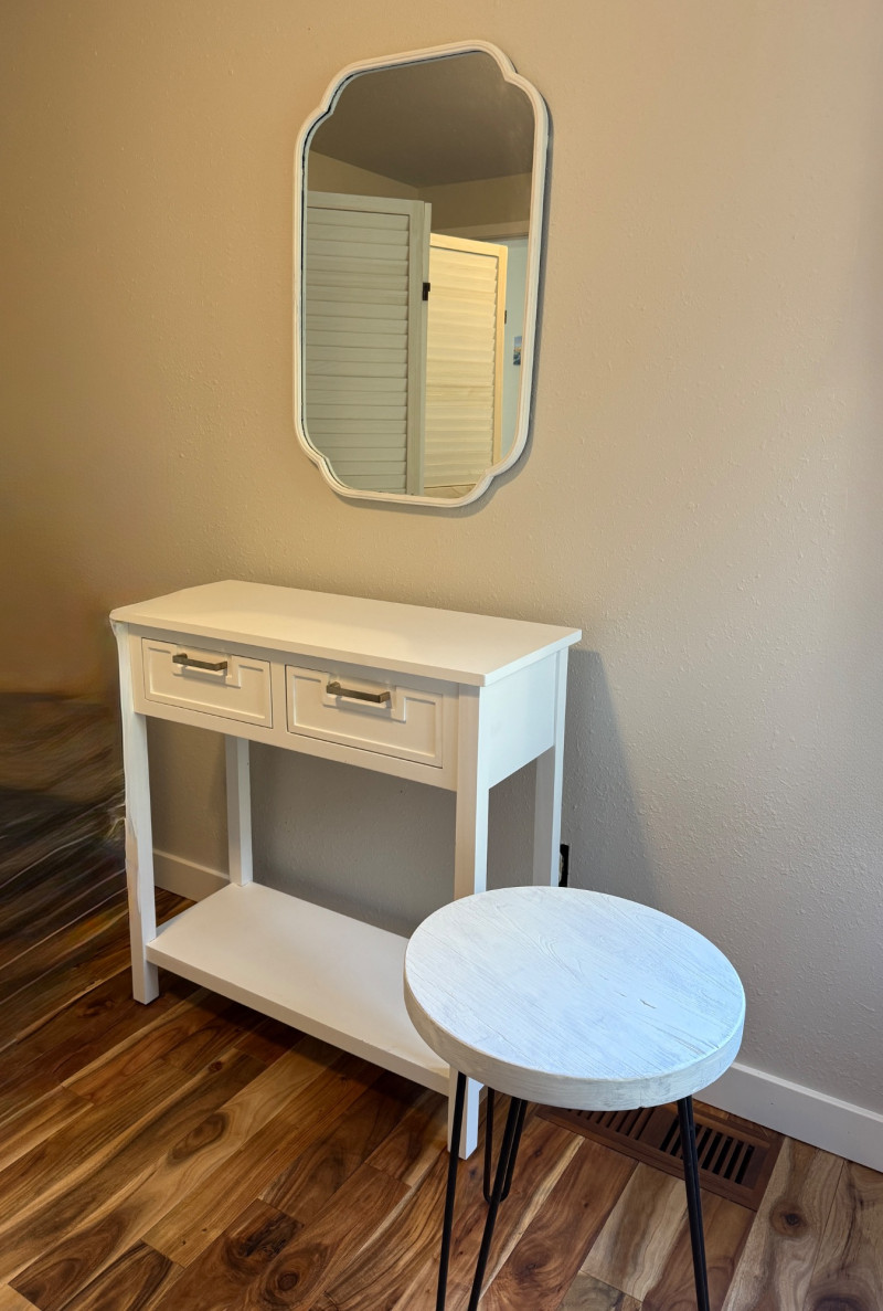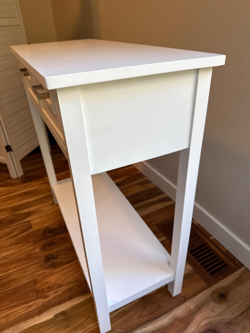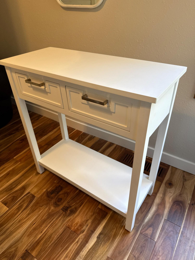 White Console Table Set. They are separate pieces but can go together. Console table, mirror, and side table.
