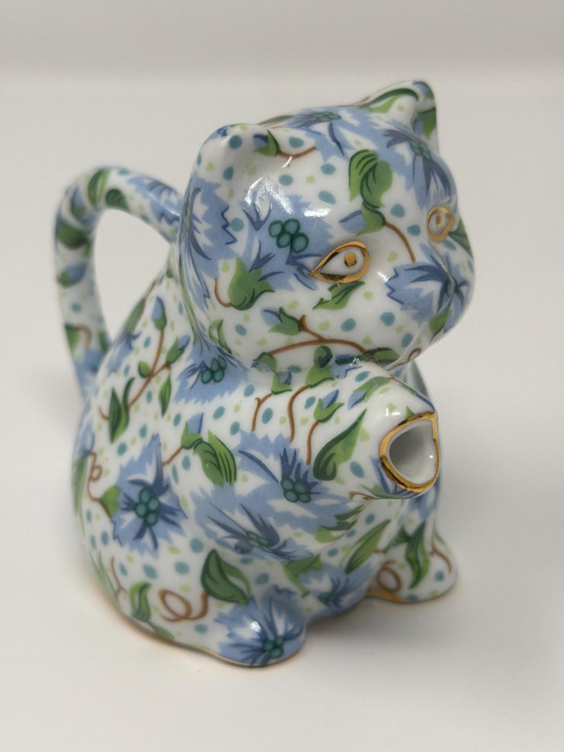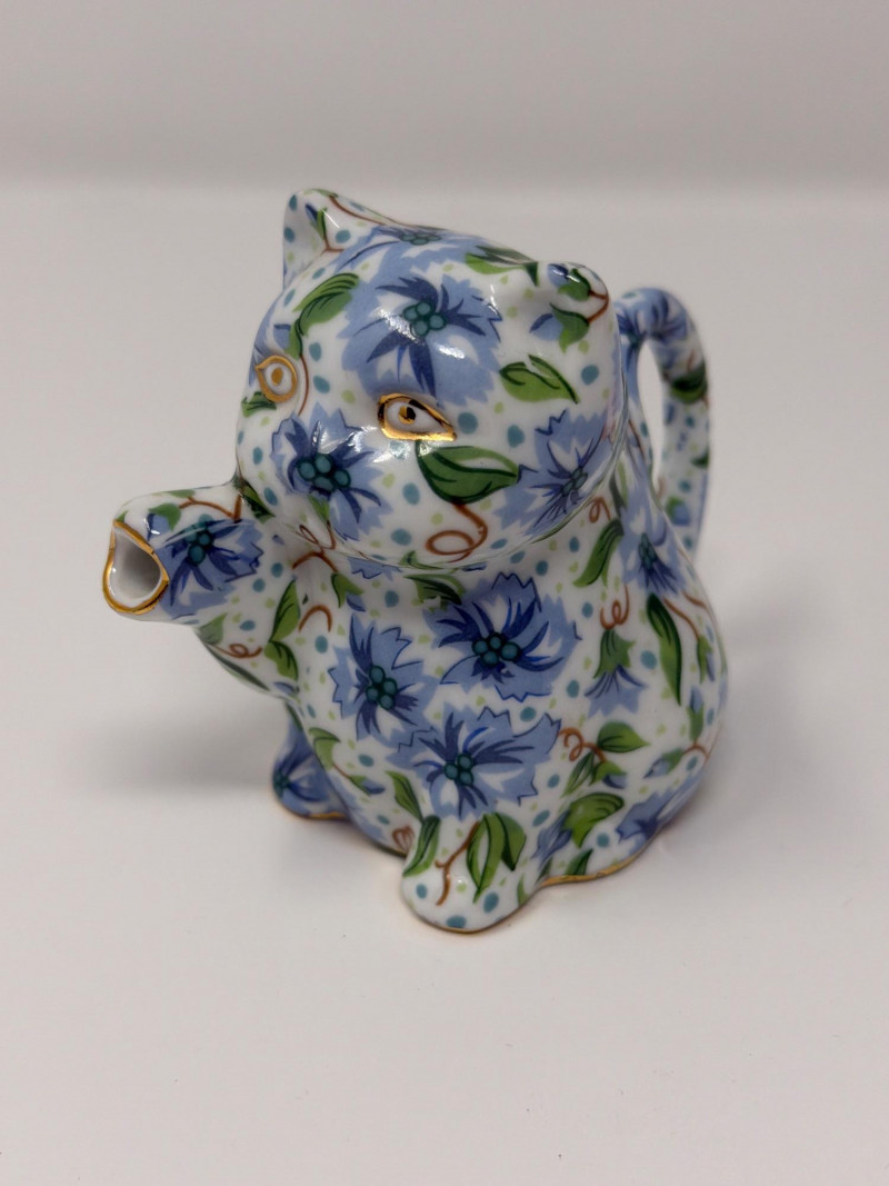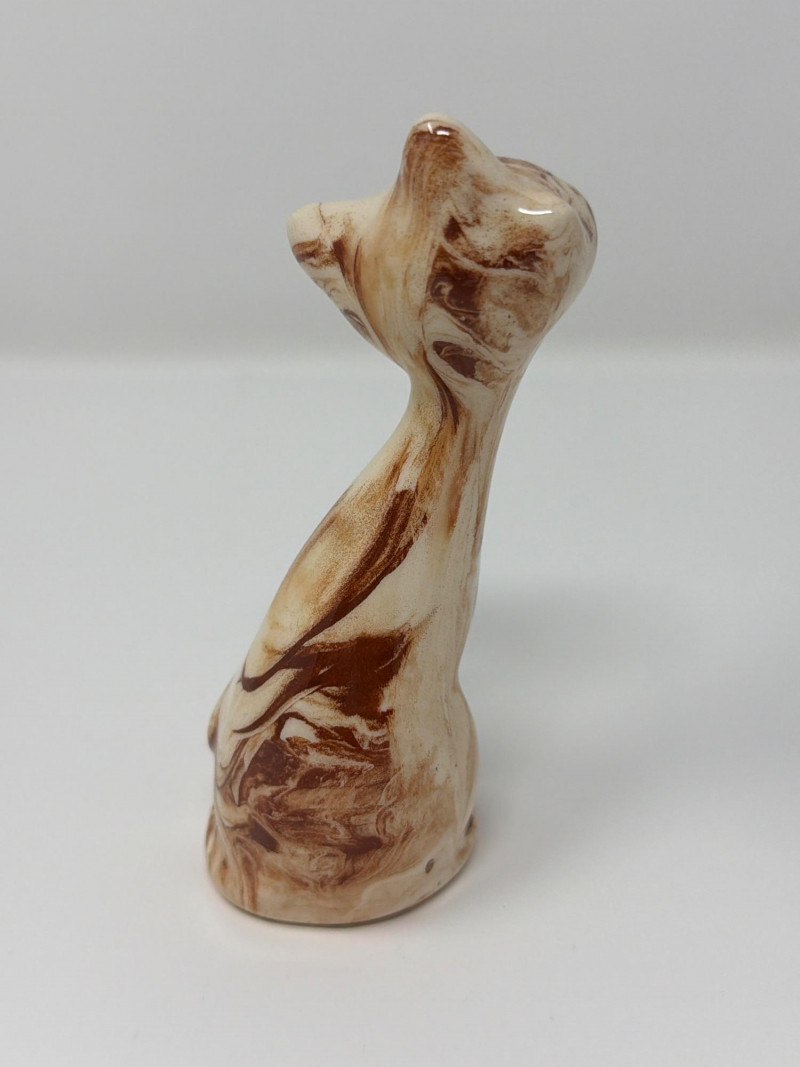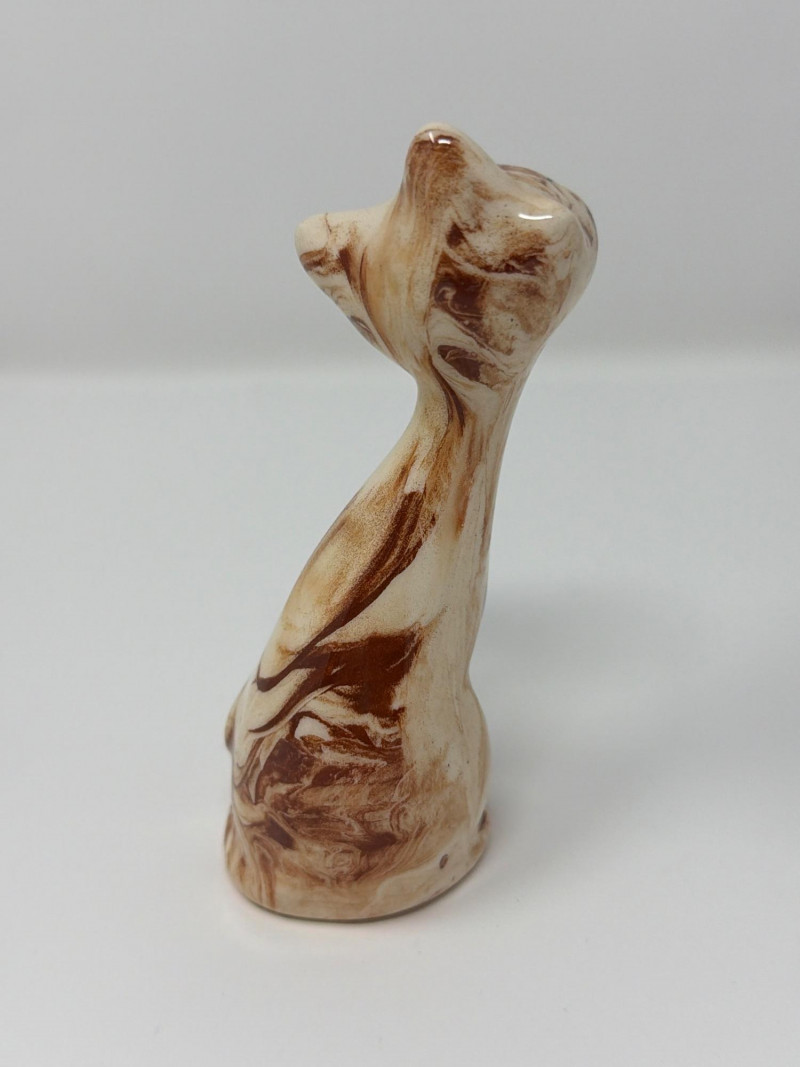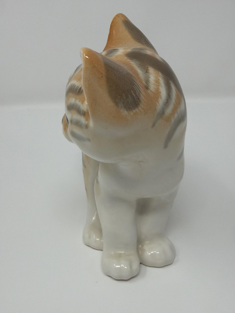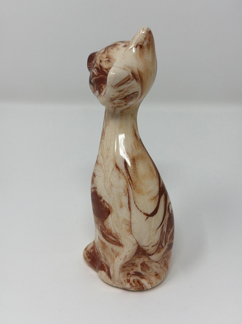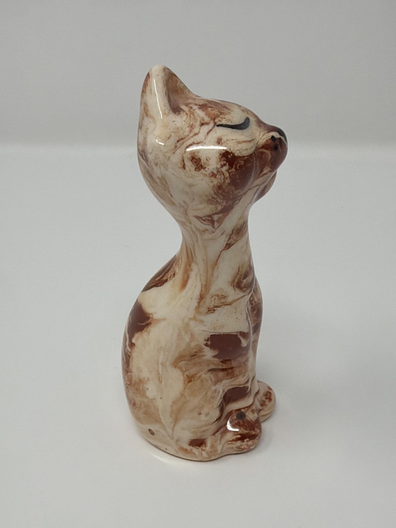 Assorted vintage and collectible cat figurines in ceramic and porcelain.