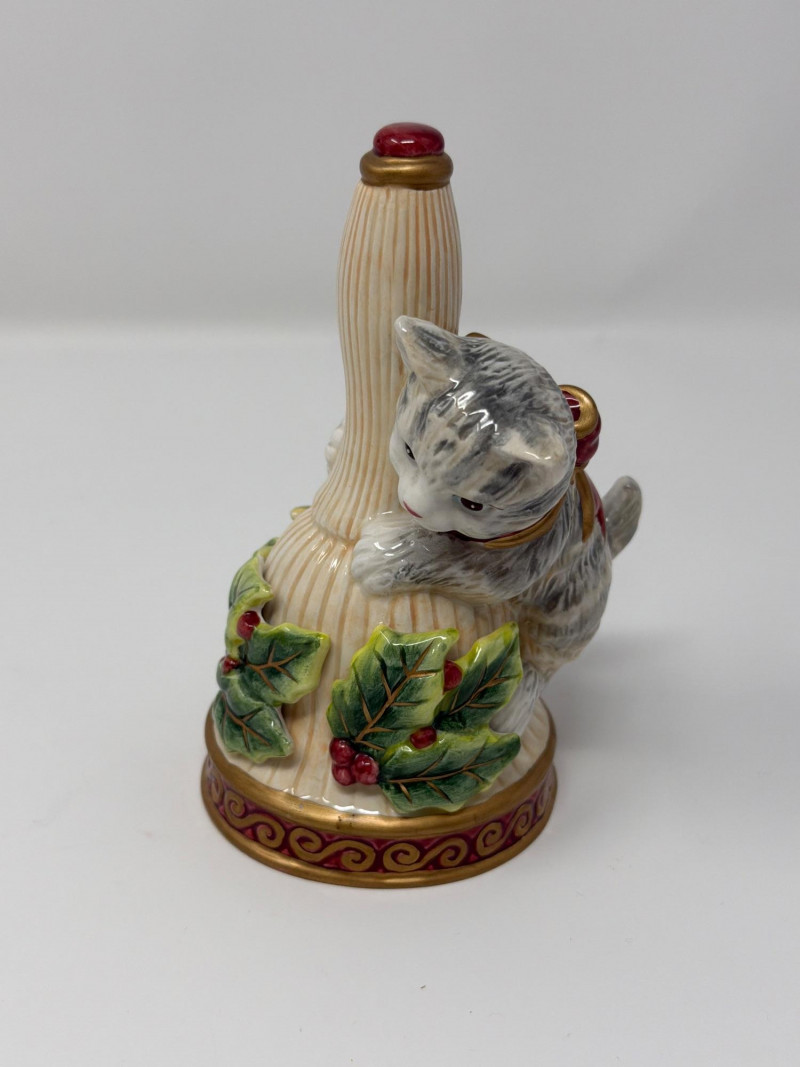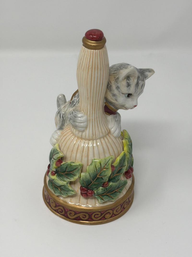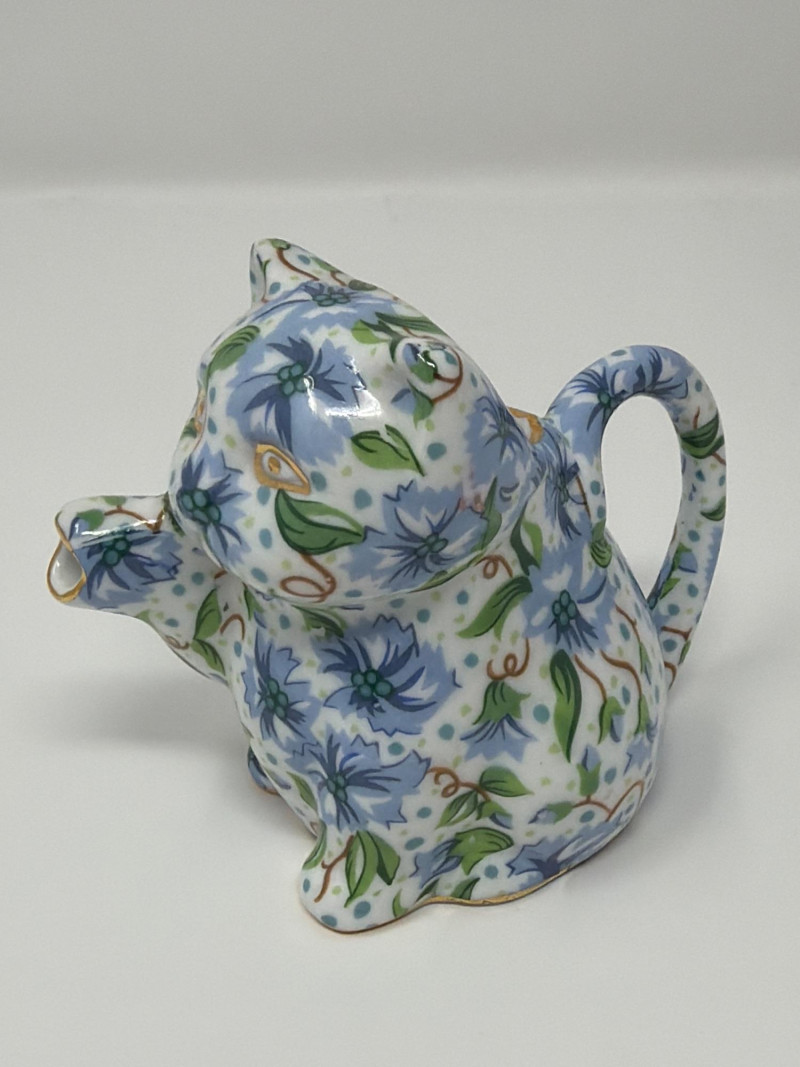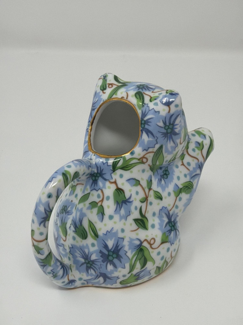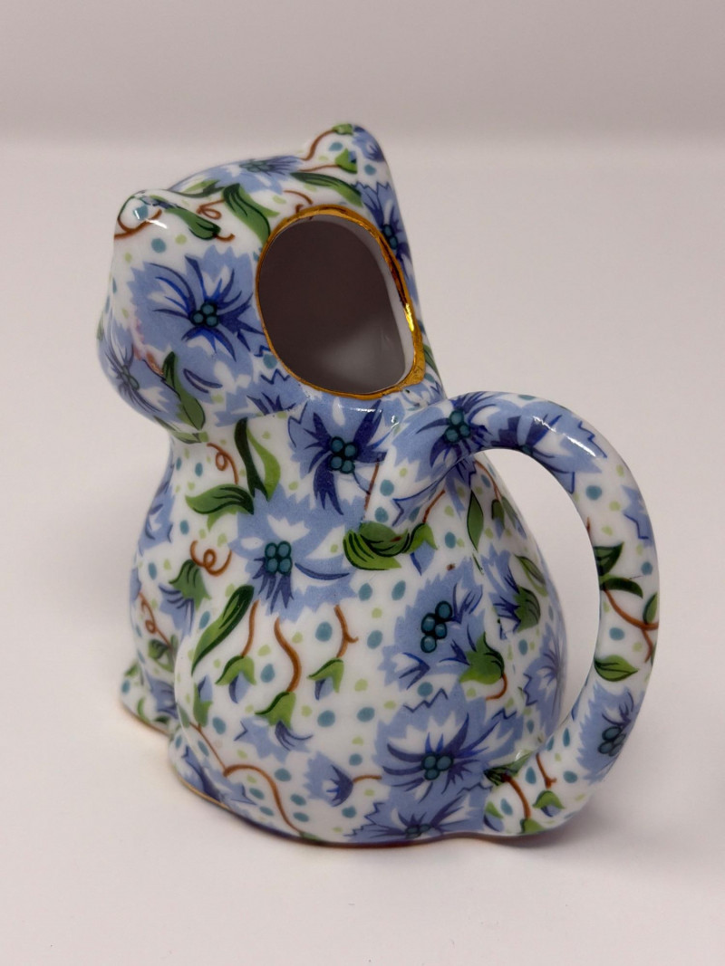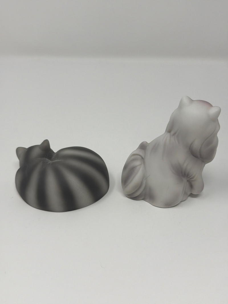 Assorted vintage and collectible cat figurines in ceramic and porcelain.