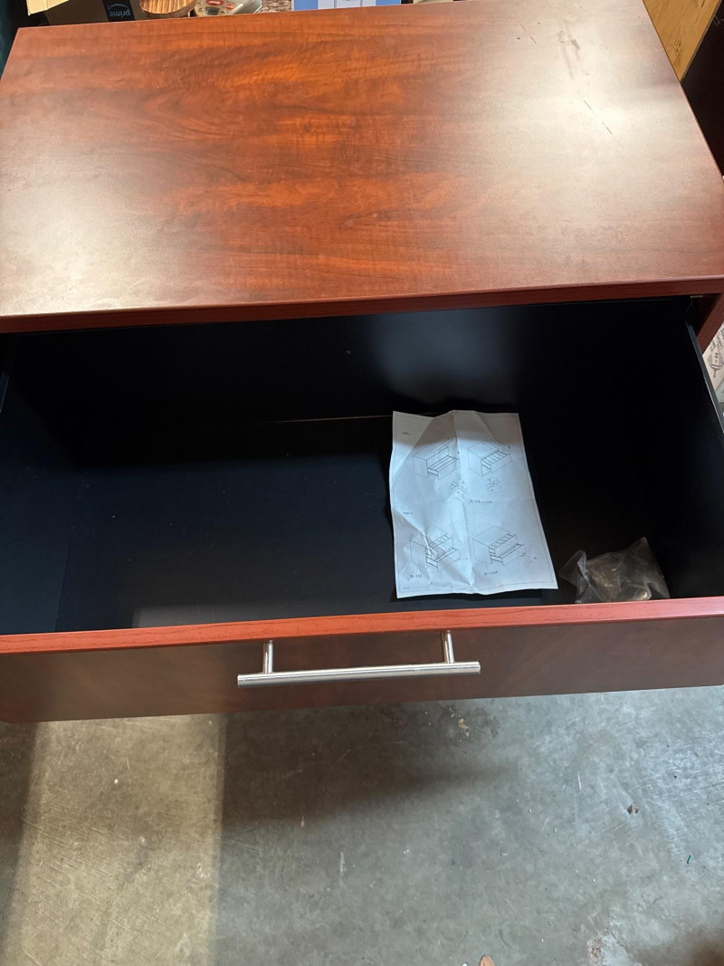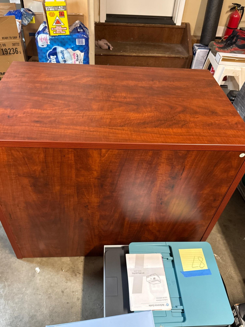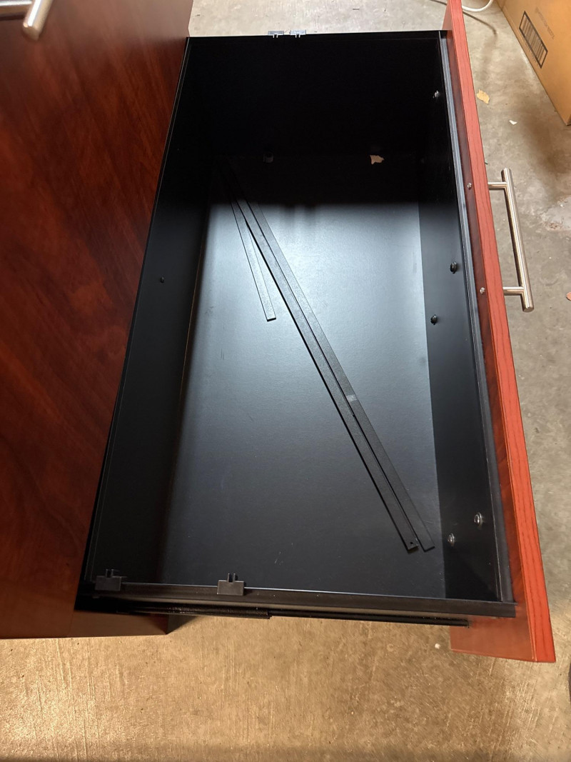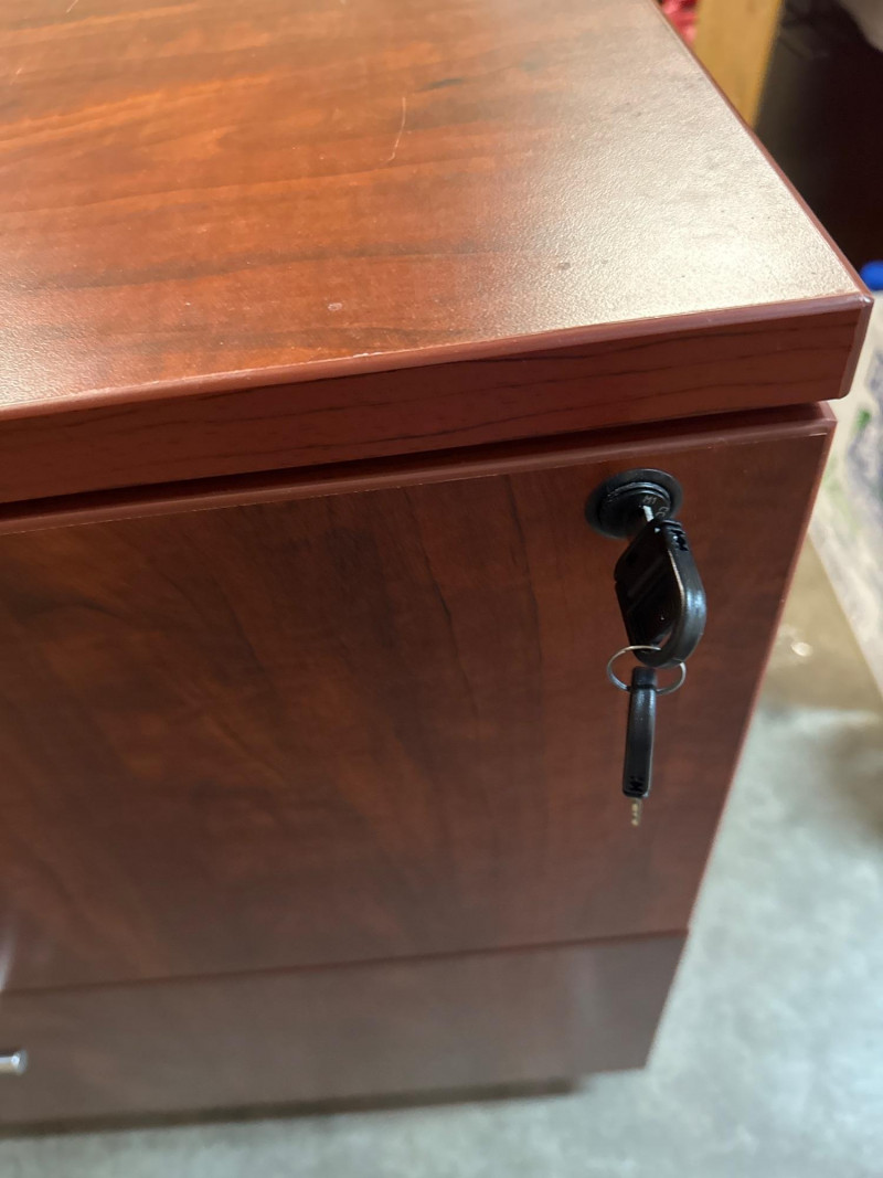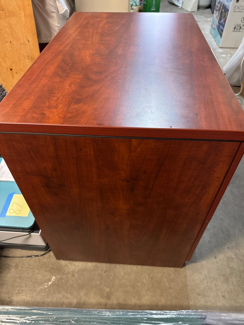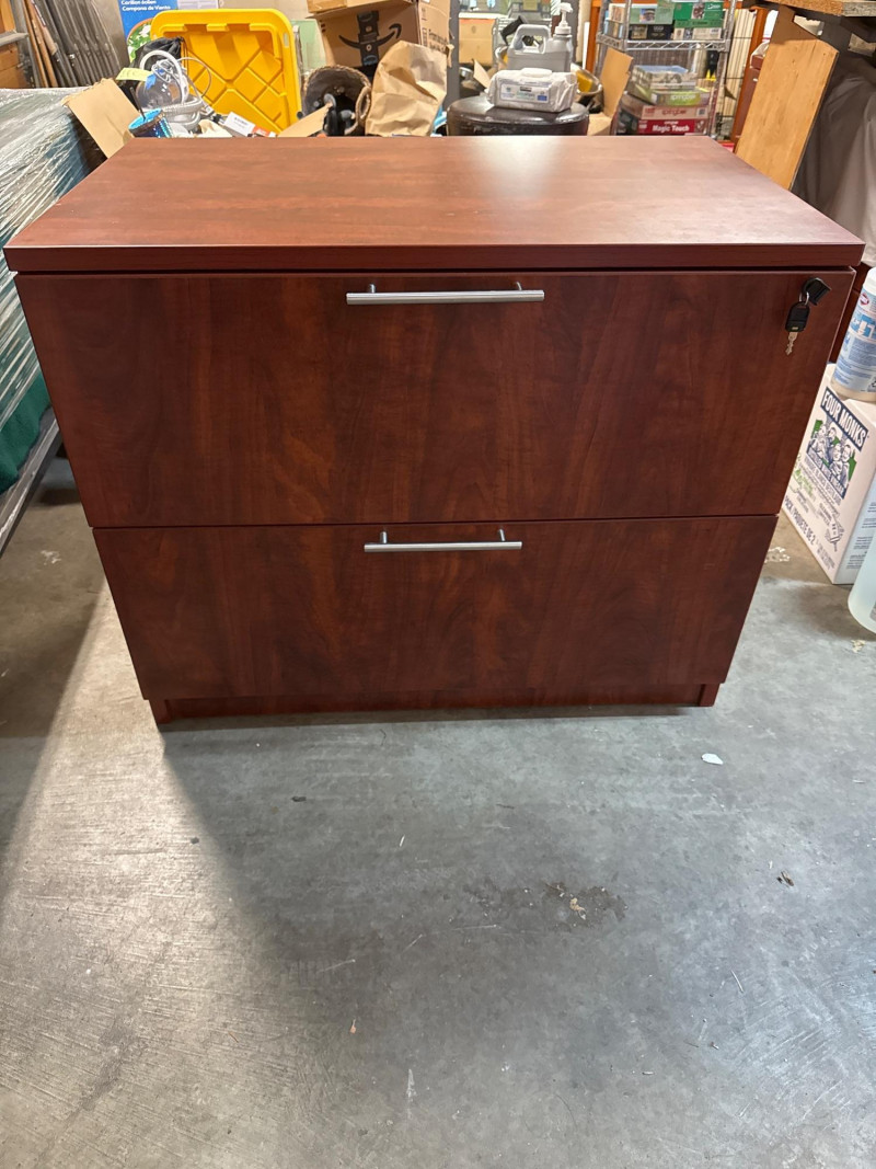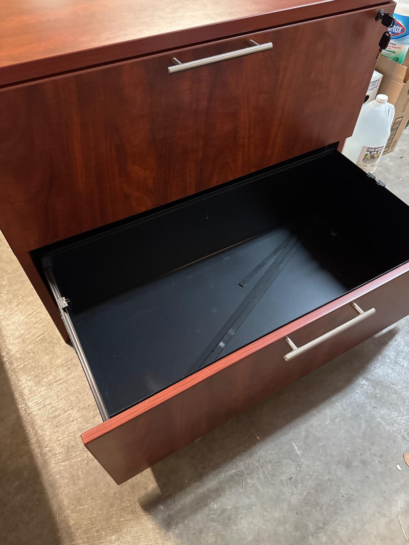 This Mahogany Drawer Lateral File Cabinet with locking drawers is a quality piece from Dania Furniture. This is a very heavy piece and is very sturdy.