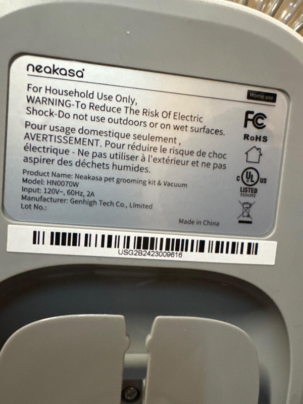 Neakasa P1 Pro Pet Grooming Kit & Vacuum Suction 99% Pet Hair, Professional Clippers with 5 Proven Grooming Tools for Dog and Cat. Only used once, so I like new condition. Here is a link to the same on Amazon: https://a.co/d/9alh5Dc