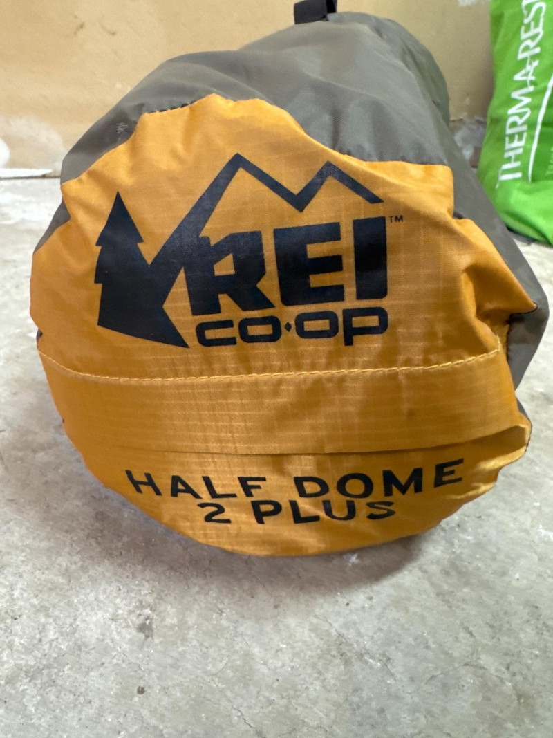 REI half dome 2+ tent only used one time the north face mummy sleeping bag. Includes storage bag and compression bag.
