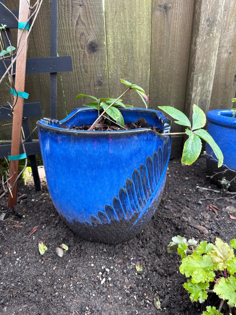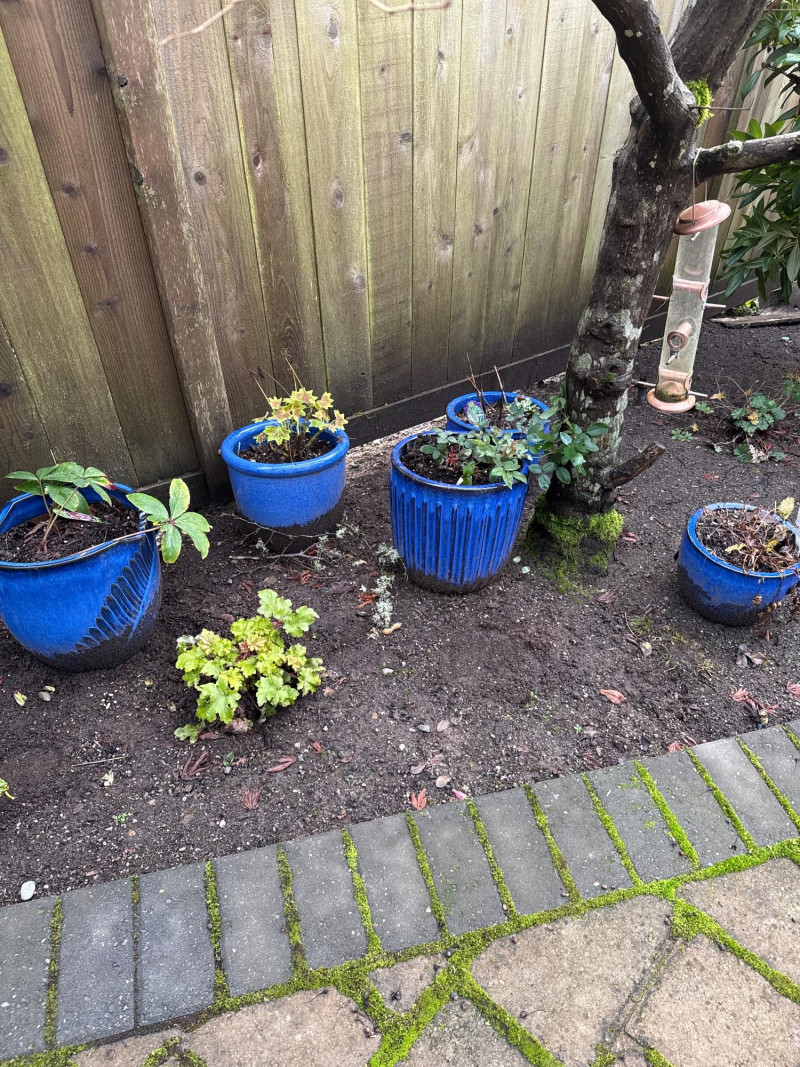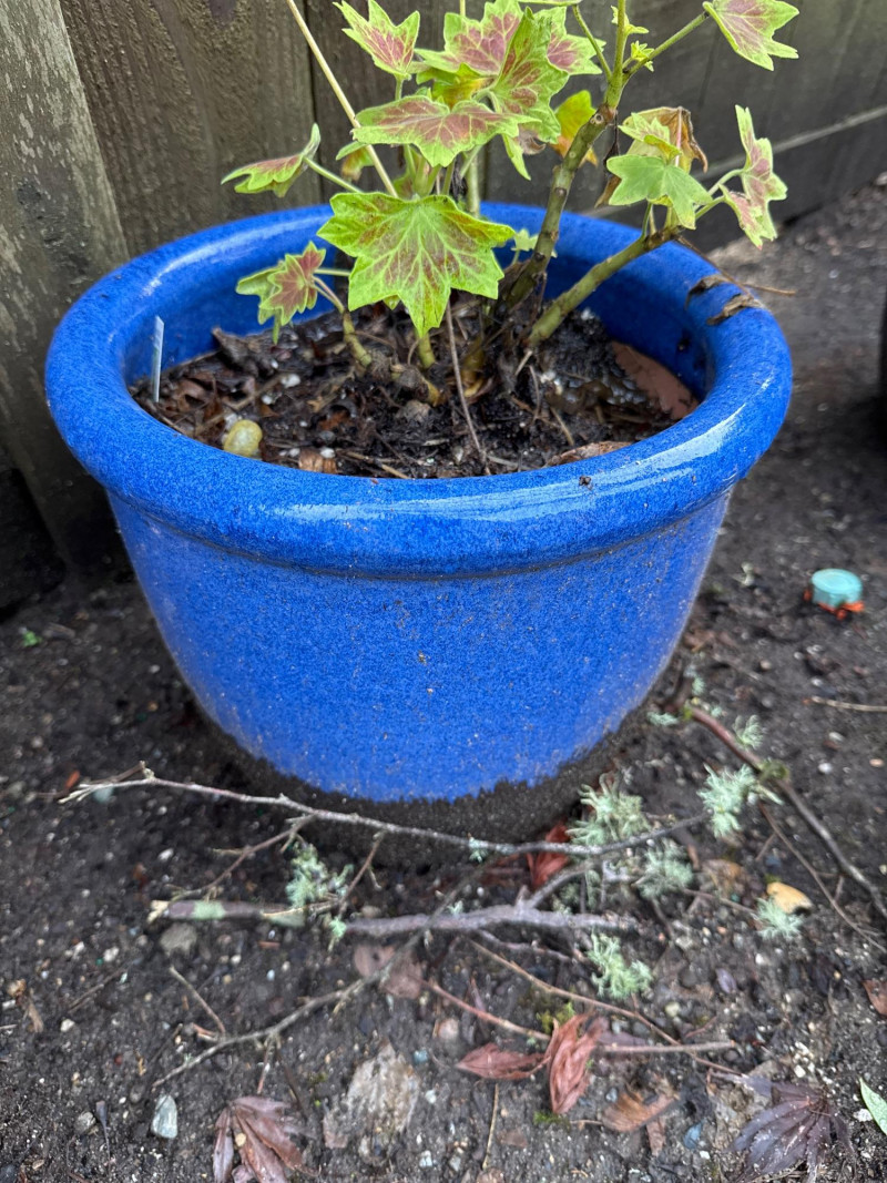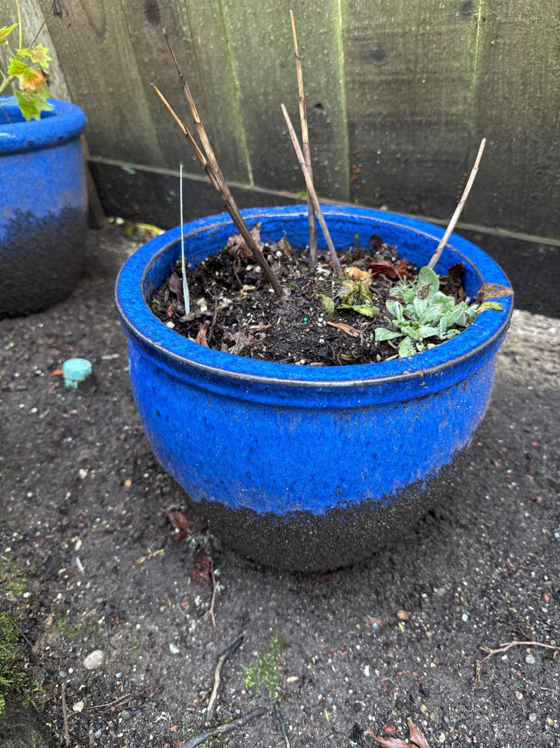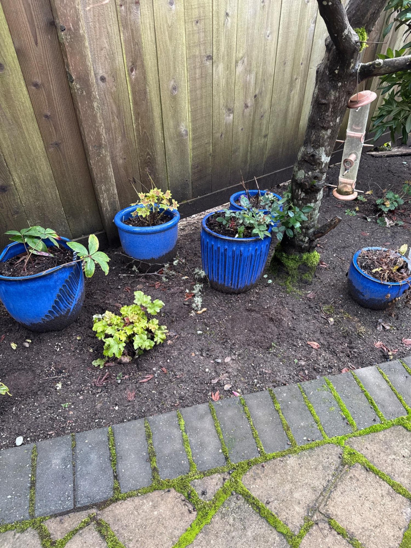 Lot # 111 - 5 Blue Ceramic Planters With Live Plants